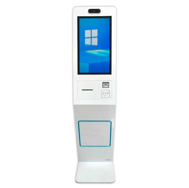 | Características | – Cámara web – Impresora térmica 80mm – Lector de códigos 2D – Altavoces: 2 x 5W Dimensiones y peso – 165 x 45 x 55 cm – 32.8 kg. aprox Contenido – APPKIOSK01 – Manual de usuario – Soporte para terminal de pago |